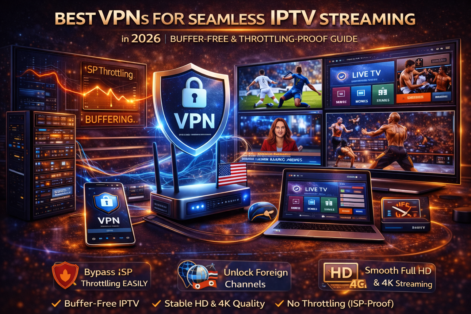 At vælge den Bedste VPN til IPTV-streaming i 2026 er en af de smarteste beslutninger, du kan tage, hvis du vil have bufferfri afspilning, ingen neddrosling og stabil Full HD- eller 4K-kvalitet. Internetudbydere bremser i stigende grad IPTV-trafikken, især i spidsbelastningsperioder, ved live-sport og større begivenheder. A IPTV VPN i topklasse eliminerer disse problemer med det samme.