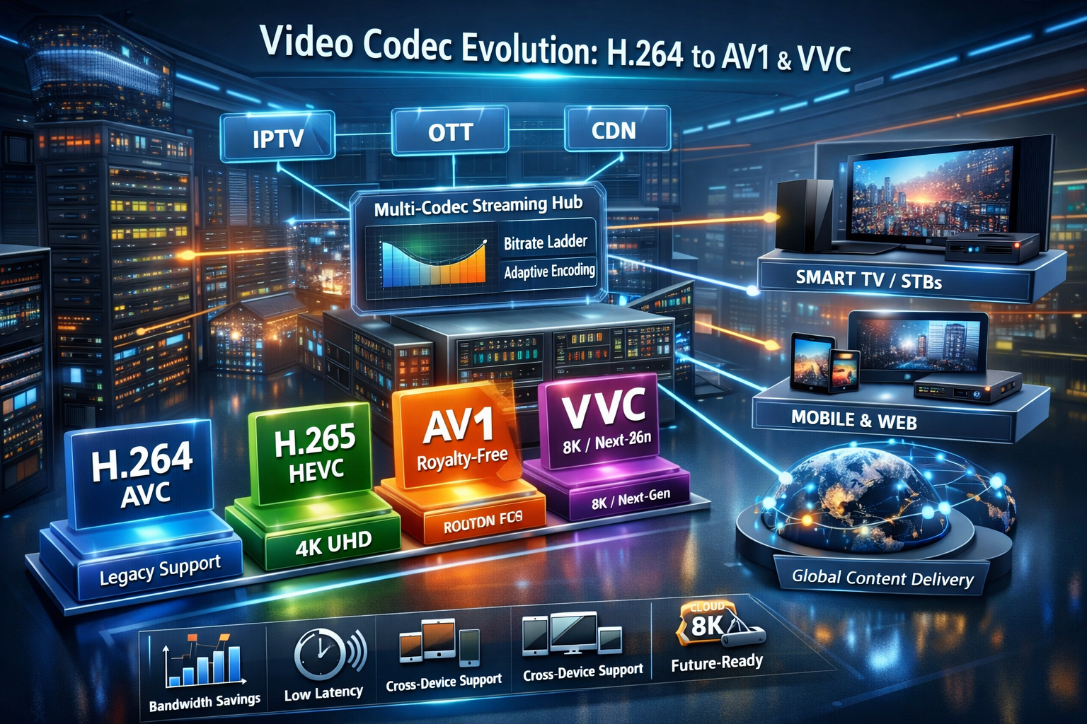 The transition from H.264 to AV1 and VVC is reshaping the entire streaming industry. While legacy codecs still play a role, AV1 is the smartest choice for most operators in 2026, delivering unmatched efficiency, cost savings, and future readiness.
