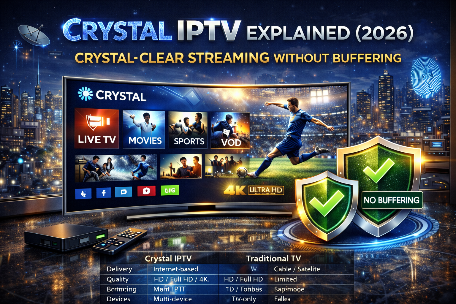 If your goal is smooth, high-quality live TV without buffering, Crystal IPTV stands out as one of the most searched and talked-about IPTV solutions in 2026.