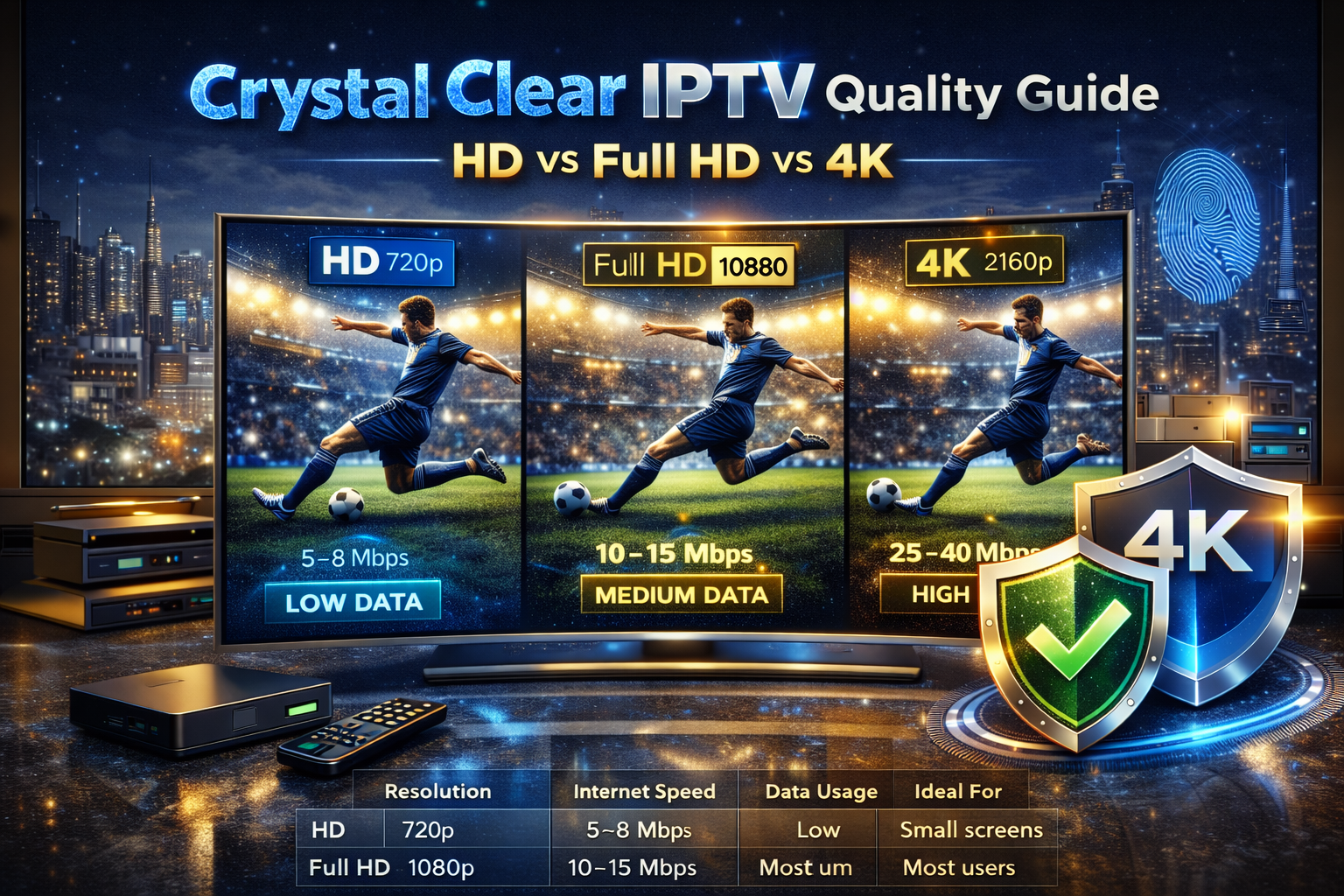 HD vs Full HD vs 4K IPTV – Quick Comparison Table