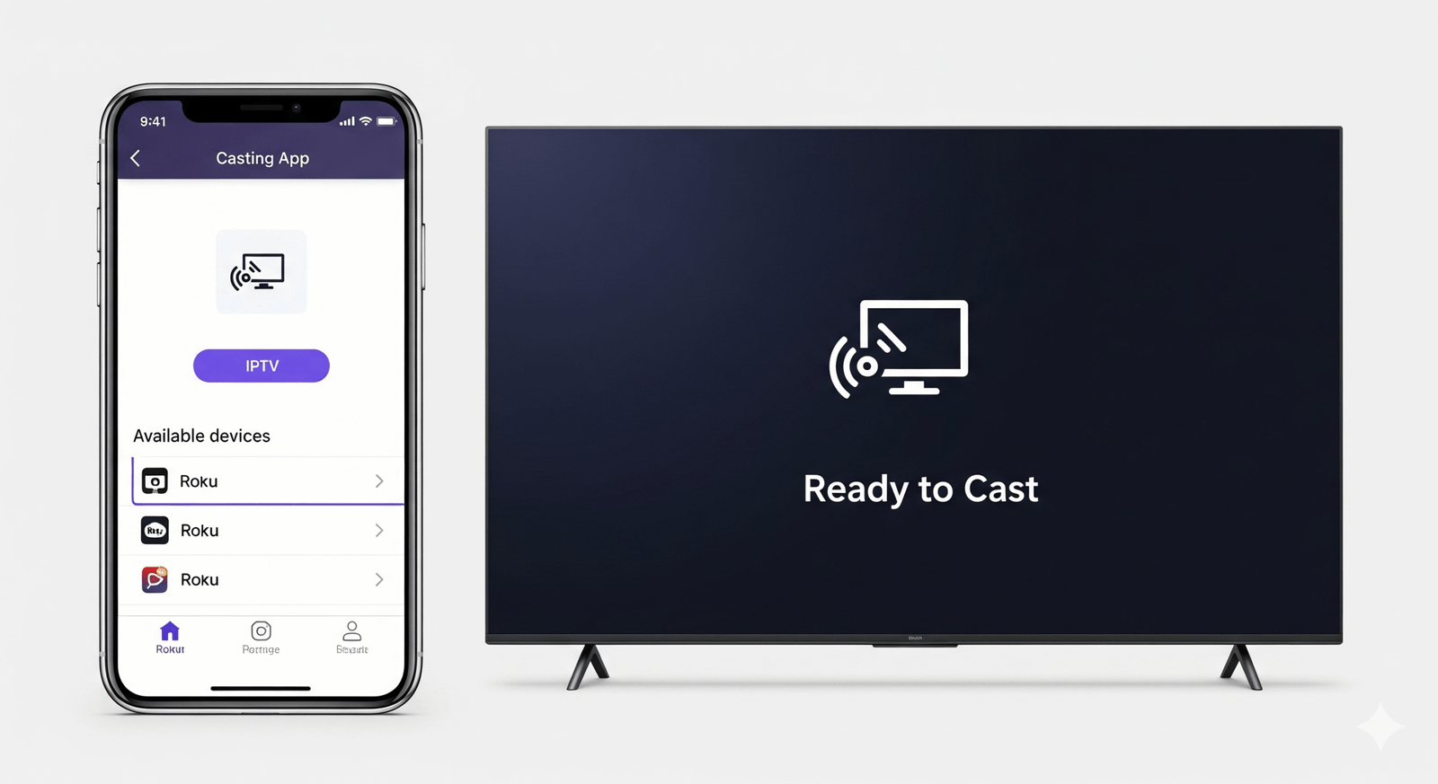 iPhone Users: Ensure AirPlay is ON in your Roku settings. Open your IPTV app on iPhone, swipe down to Control Center, tap the Mirroring icon, and pick your Roku.