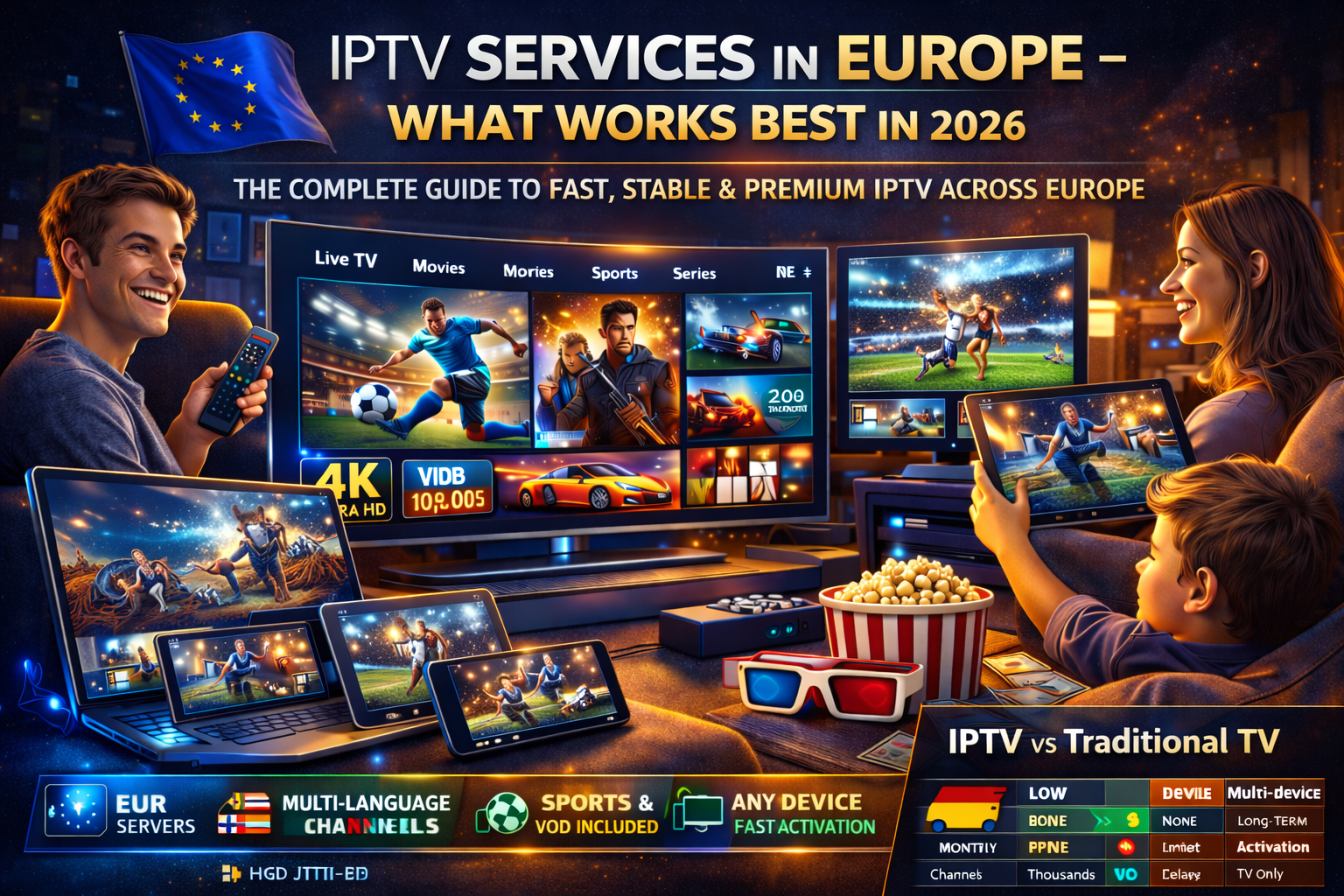 In 2026, IPTV services in Europe have fully replaced traditional cable and satellite TV for millions of users. With faster internet, smarter TVs, and rising cable prices, IPTV has become the most reliable way to stream live tv, sport, movies, and series across European countries.