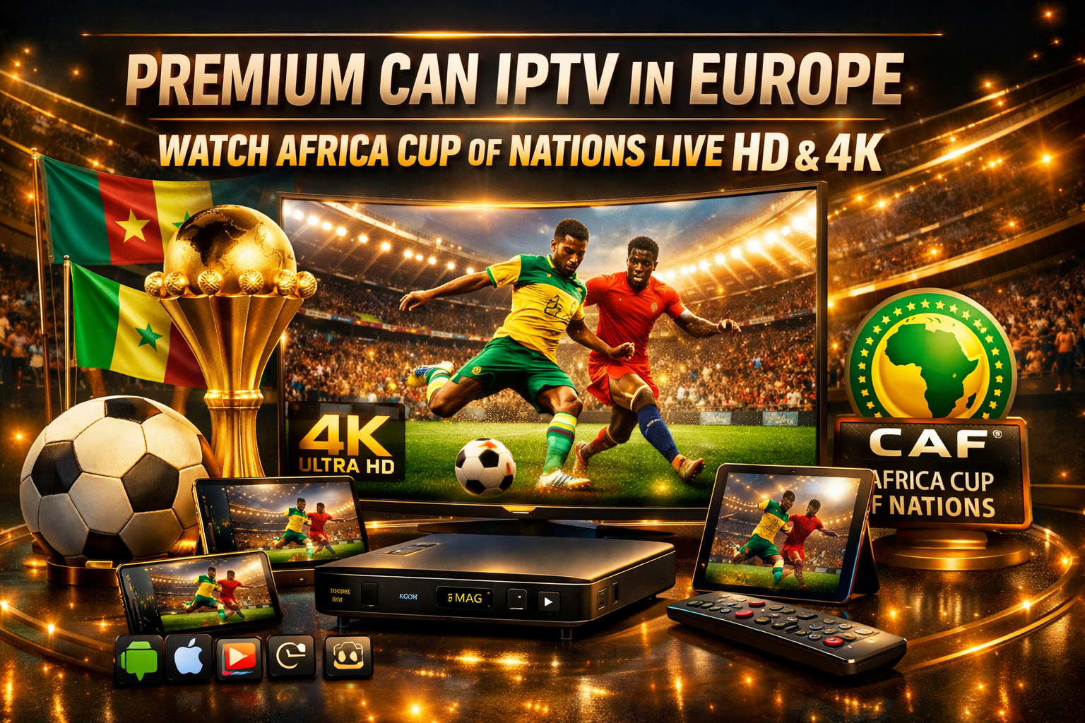 Upgrade your sports streaming today with the most reliable CAN IPTV in Europe and enjoy Africa Cup of Nations live streaming without interruptions.