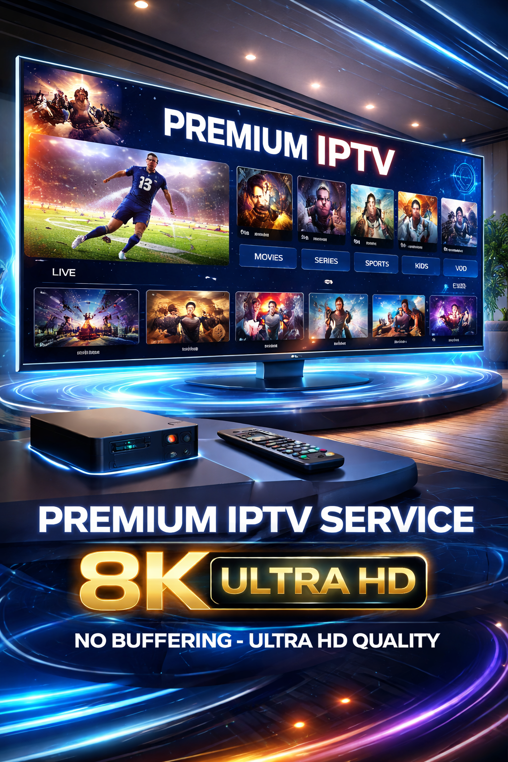 A premium IPTV service streams live TV channels, movies, and on-demand content through high-performance internet servers instead of traditional cable or satellite. With 8K support, these services deliver: