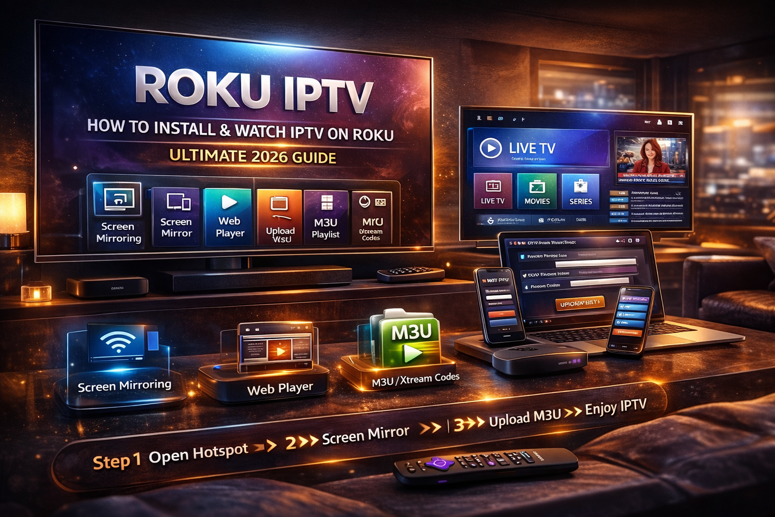 Ser till titta på IPTV på Roku år 2026 smidigt, säkert och utan försök och misstag? Detta guide riktar in sig på de mest intressanta sökorden: Roku IPTV 2026, hur man tittar IPTV på Roku, installera IPTV på Roku TV, och bästa Roku IPTV metod.